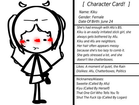 Kiku is an easily irritated stick girl, she always gets bothered by Afu.